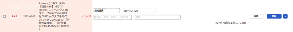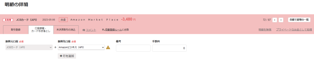 - この時、日付順に処理し、Amazonビジネス分は、その単位で振替処理を行います。