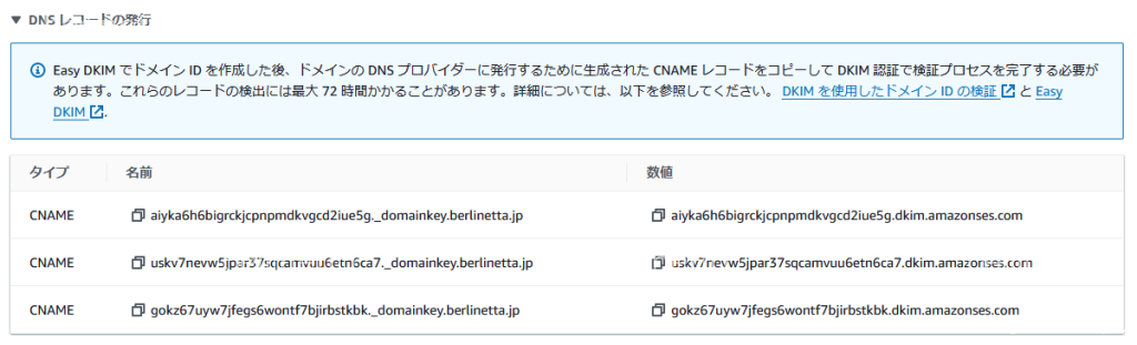 ※ドメイン認証後でないと、DKIMやSPFの認証が失敗しますので、ドメイン認証後に実施する事。