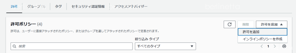 既にIAMのユーザーを作成済みの場合、例えばクラウドストレージで「S3」サービス用にユーザーを作成済みの場合などは、作成済みユーザーにSESの権限を追加することで、不要なAPIキーを発行しないですみます。