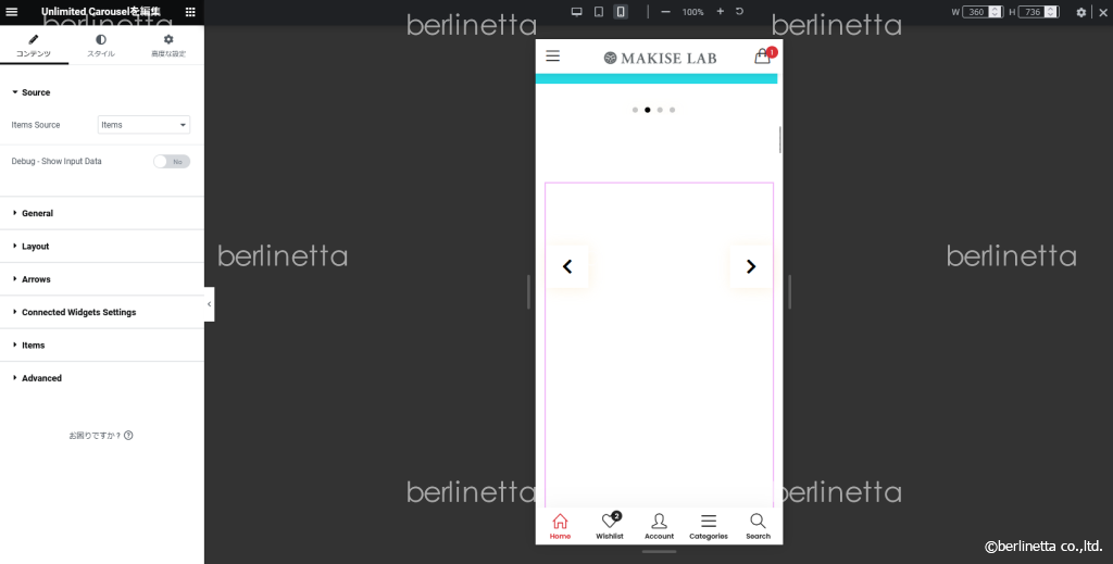 - 該当のウィジェットを表示します。(今回はUnlimited Carouselです)